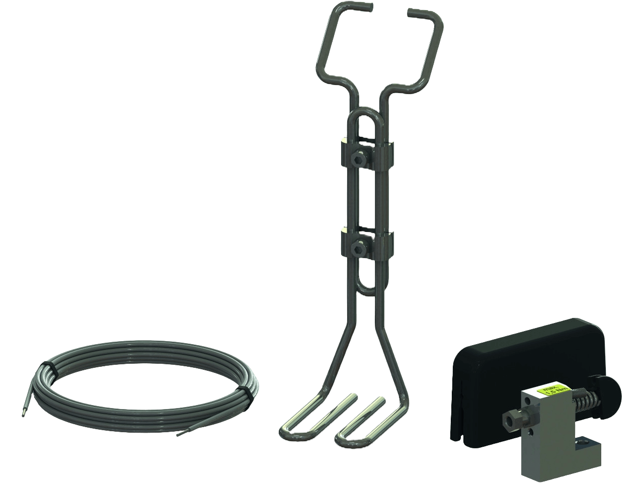 Unité de serrage, équerre de fixation, 20 m de câble en acier et accessoires pour montage extérieur