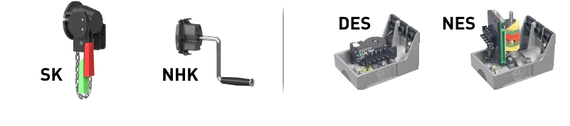 - Tous modèles fonctionnent avec opération manuelle par une manivelle d'urgence (NHK)
