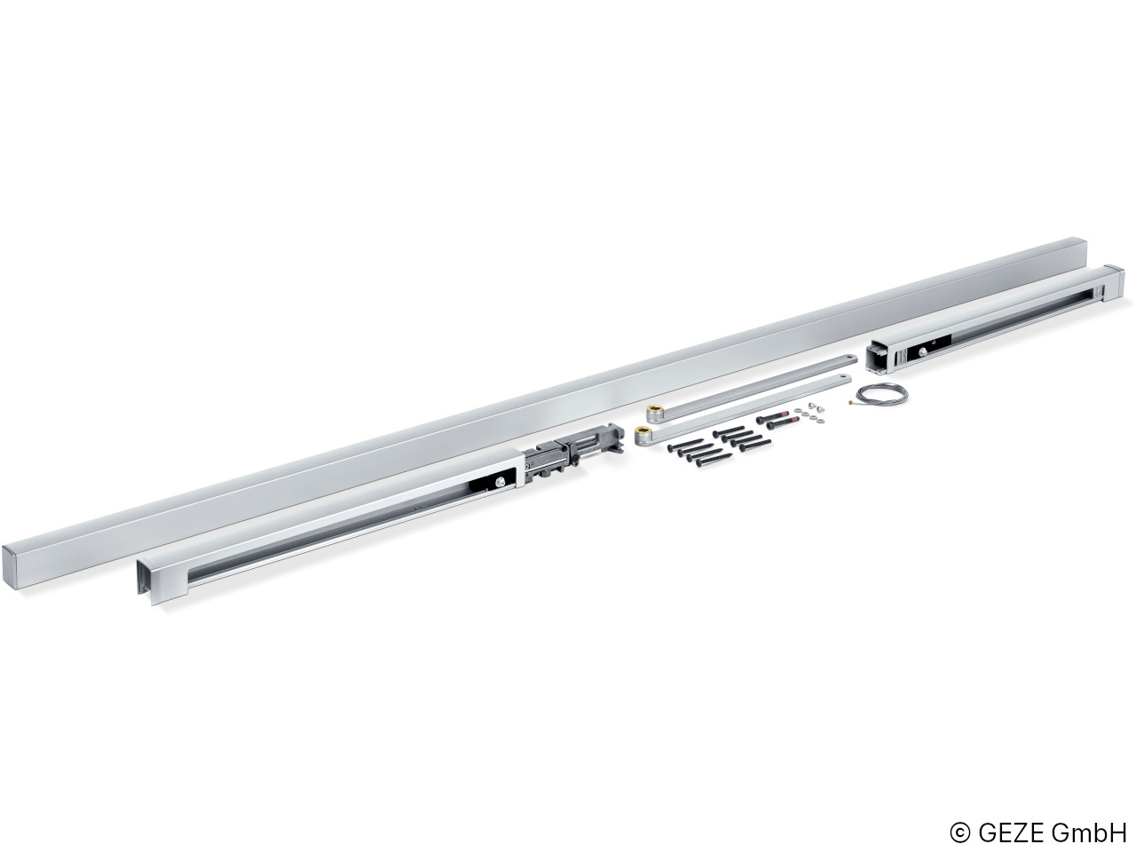 Glissière avec commande de séquence de fermeture et leviers pour ferme-porte TS 5000, couleur : argent, GEZE Réf. : 115549