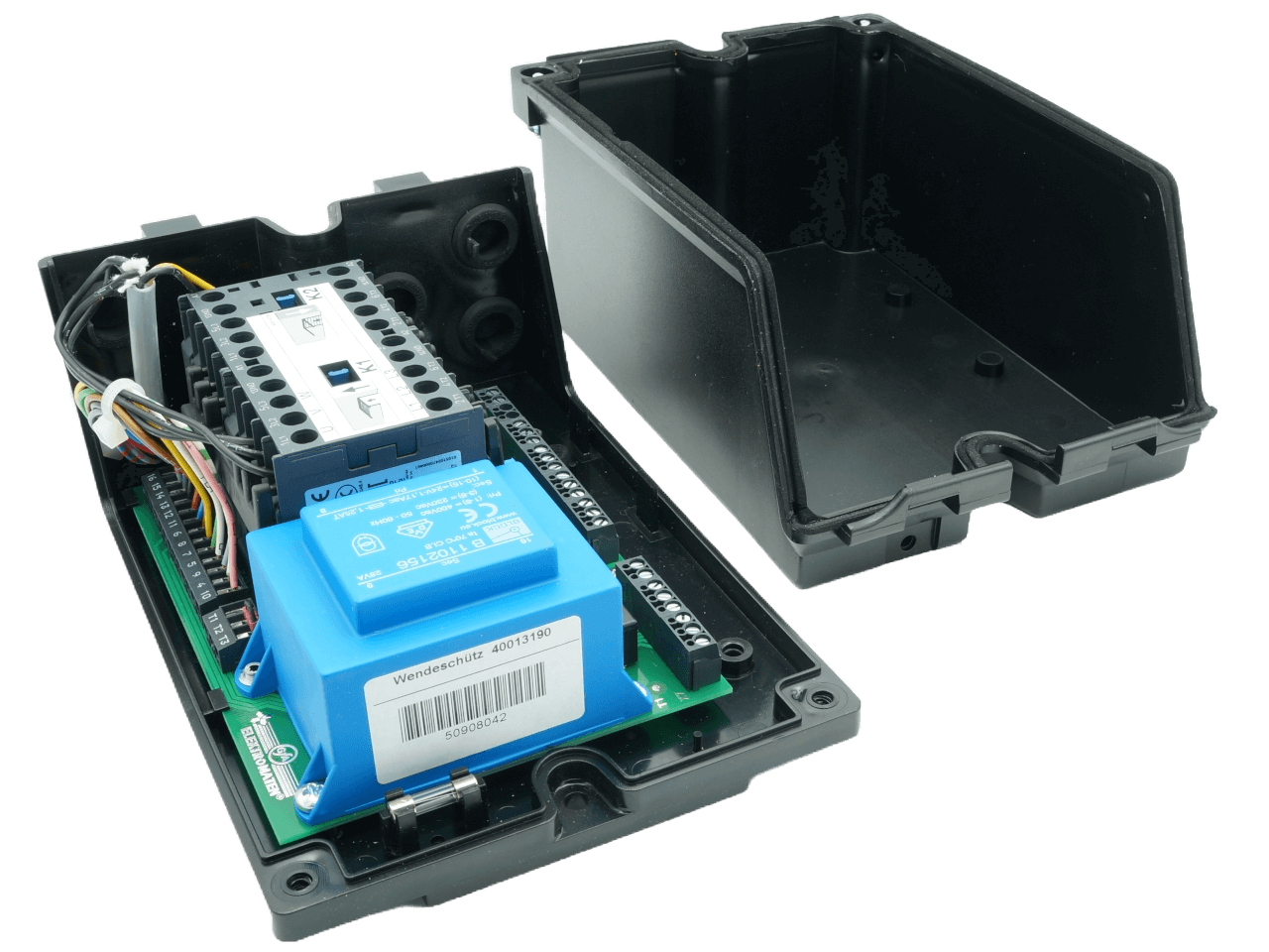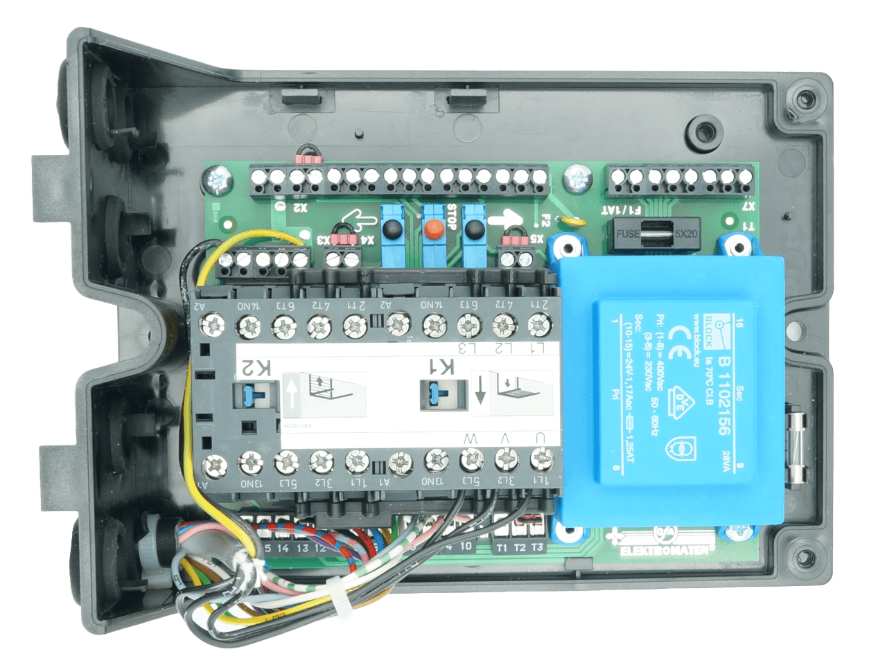 Coffret de commande pour motorisations GfA Elektromaten avec fin de course mécanique NES, 2 contacteurs, tension de commande 24V, câbles de 0,8m et fiche pour le moteur Elektromaten, sans prise CEE