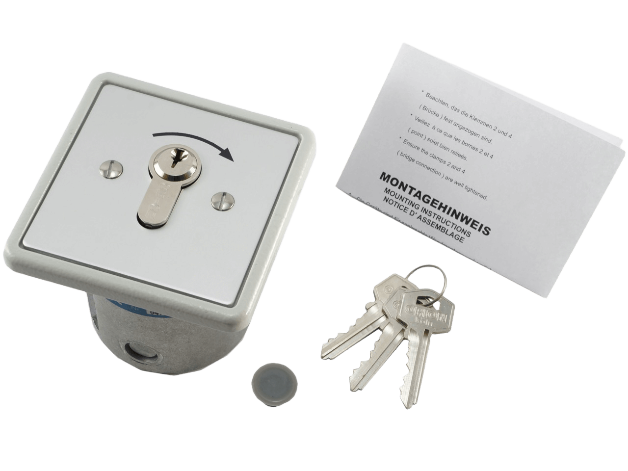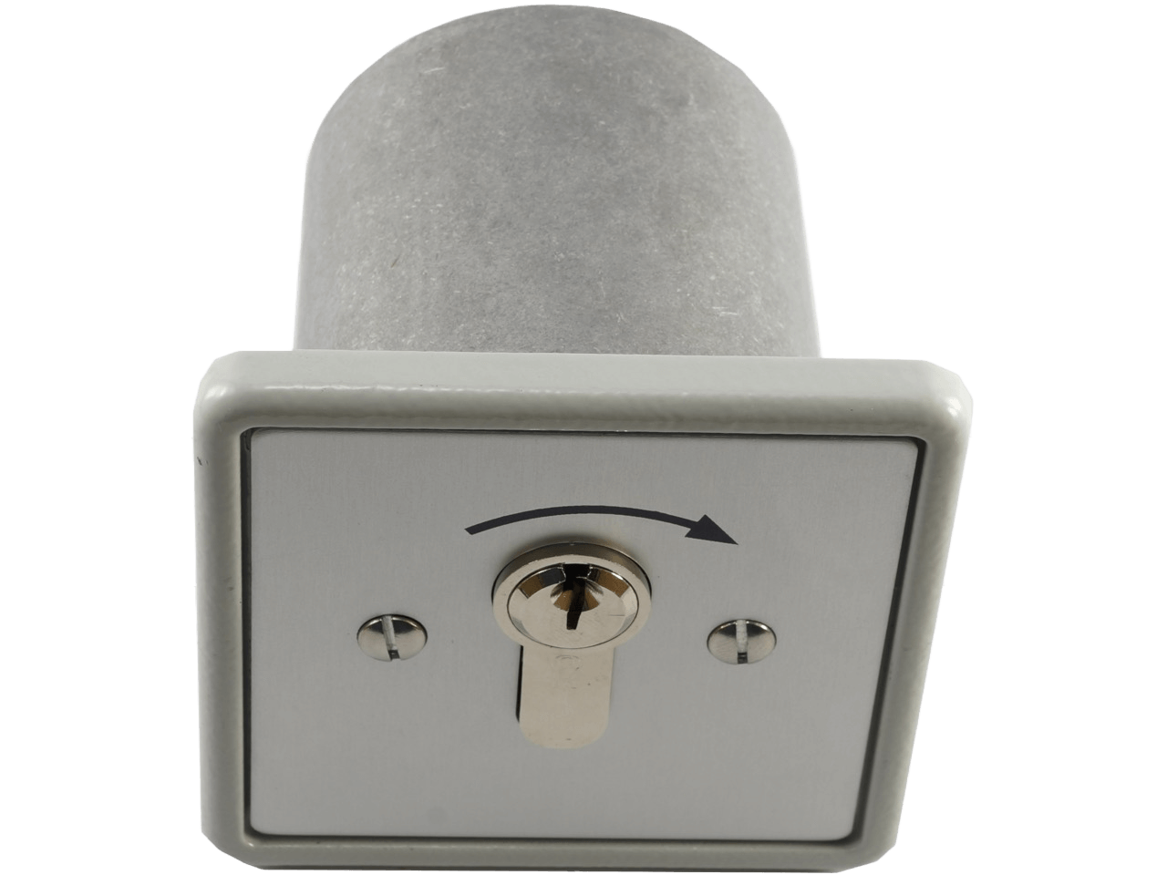 Key-switch in flush-mount aluminium enclosure, IP55 rating, 1-sided impulse switch, with cylinder lock and 3 keys