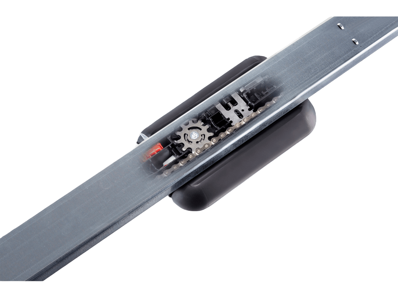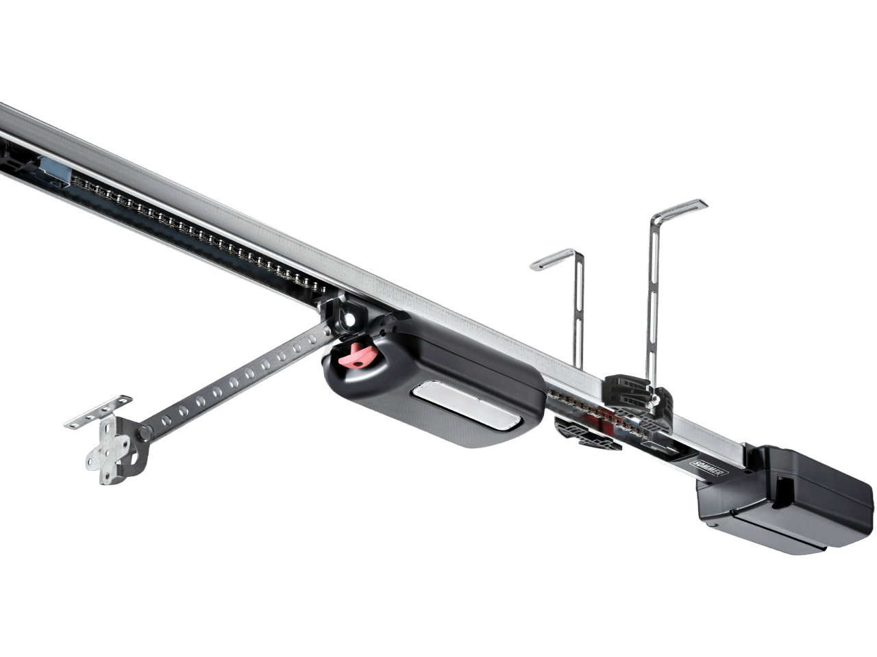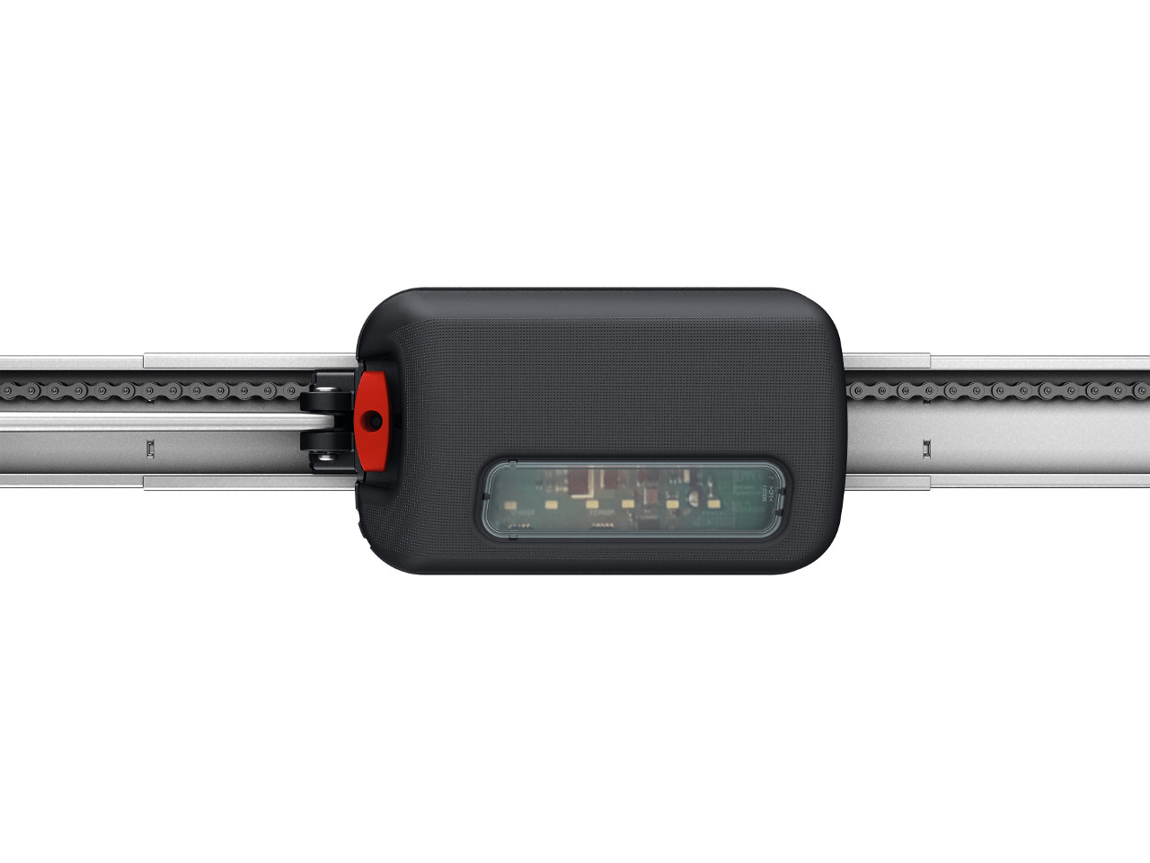 Le kit automatisme pour portes de garage base+ S9060 de Sommer s'utilise pour l'opération des portes sectionnelles jusqu'à une hauteur de 2500 mm, des portes basculantes jusqu'à 2750 mm de hauteur, et un poids de porte maximal de 120 kg. Avec des extensions de rail disponibles en option, l'automatisation de portes plus hautes est également possible. Grâce à une chaîne, installée en permanence dans le rail, cet entraînement permet que le chariot se déplace sans usure et sans entretien.