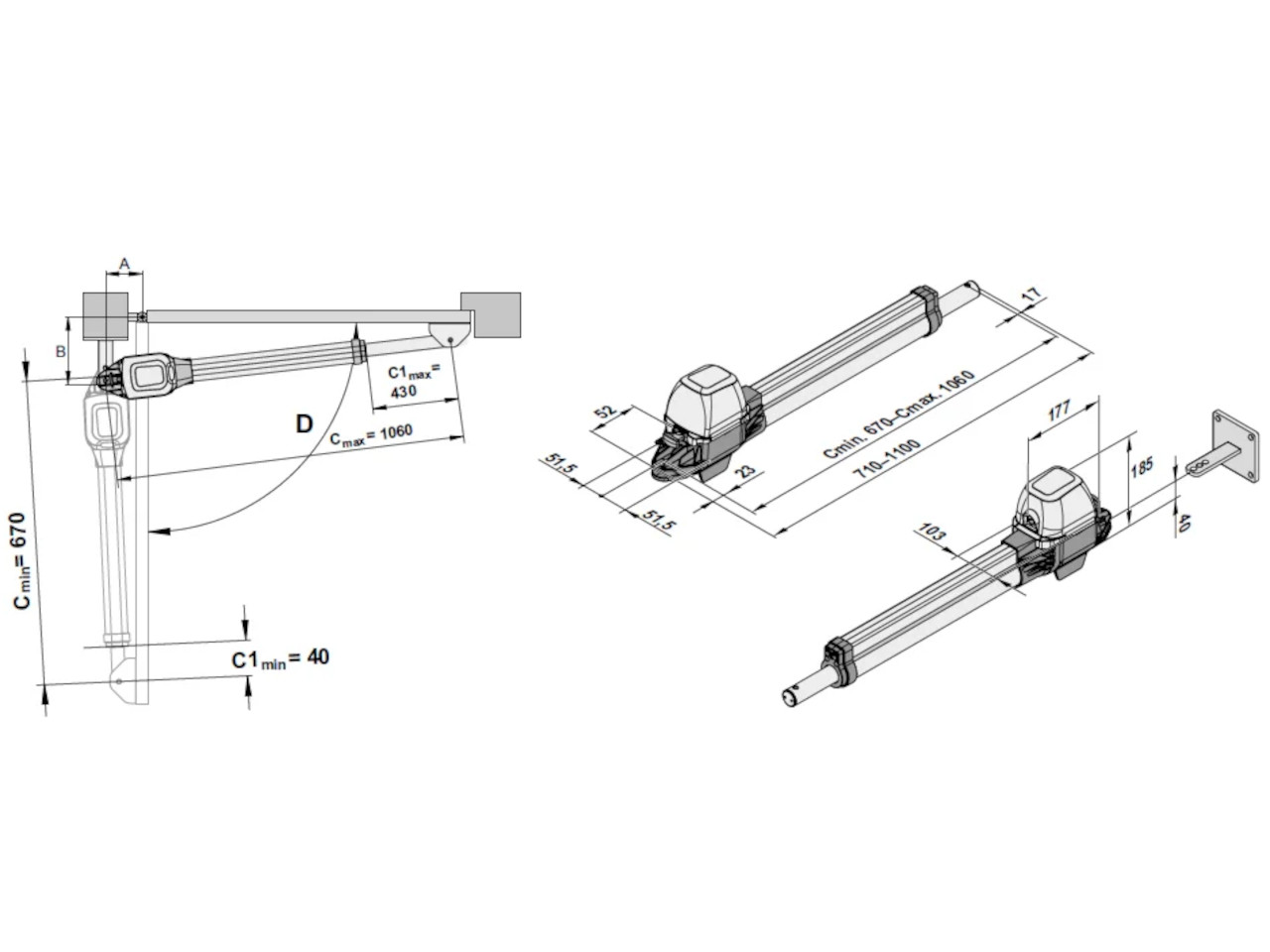 - Convient aux portails privés et commerciaux avec des largeurs de vantail jusqu'à 2,5 mètres et 300 kg par vantail.